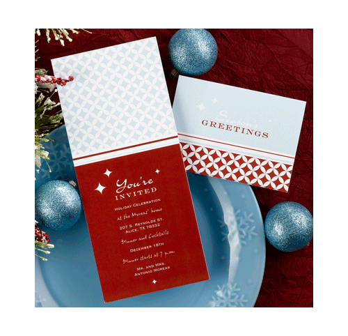 No matter what the theme of your next holiday party may be with the selection of holiday invitations we offer we have a card that will fit your event. Our holiday invitations can be used for holiday dinners, Christmas parties, cocktail parties, and even to celebrate the New Year. We offer formal cards that would be perfect for a corporate holiday event and holiday cards inviting family and friends to join in on the fun of the season. These cards are sure to get your guests in the mood to celebrate the holidays with you!